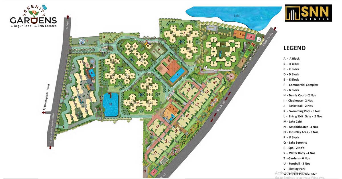 Most awaited Pre-Launch with RERA Approval… SNN Estates presents “Serenity Gardens”, the Final Phase of Serenity Gardens located in Begur Road off Bannerghatta Road very close to Electronic City where all the major IT companies are located. The overall project is spread across 29 acres and 6 guntas out of which Serenity Gardens (G Block) will be on 7 acres.A natural retreat for colourful butterflies, the rare common house sparrows and spectacular flora and fauna, Life at Serenity Gardens is as charming s it gets. One of the many advantages of living in SNN Serenity Community is enjoying the facilities of Clubhouse which is spread over 1 Lakh Sft. Now adding 30000 Sft. more at the Gardens Block. Extending the Serenity advantages to more homeowners, Serenity Gardens brings you blissful living with its beautifully landscaped gardens spread over 1 Lakh sqft.